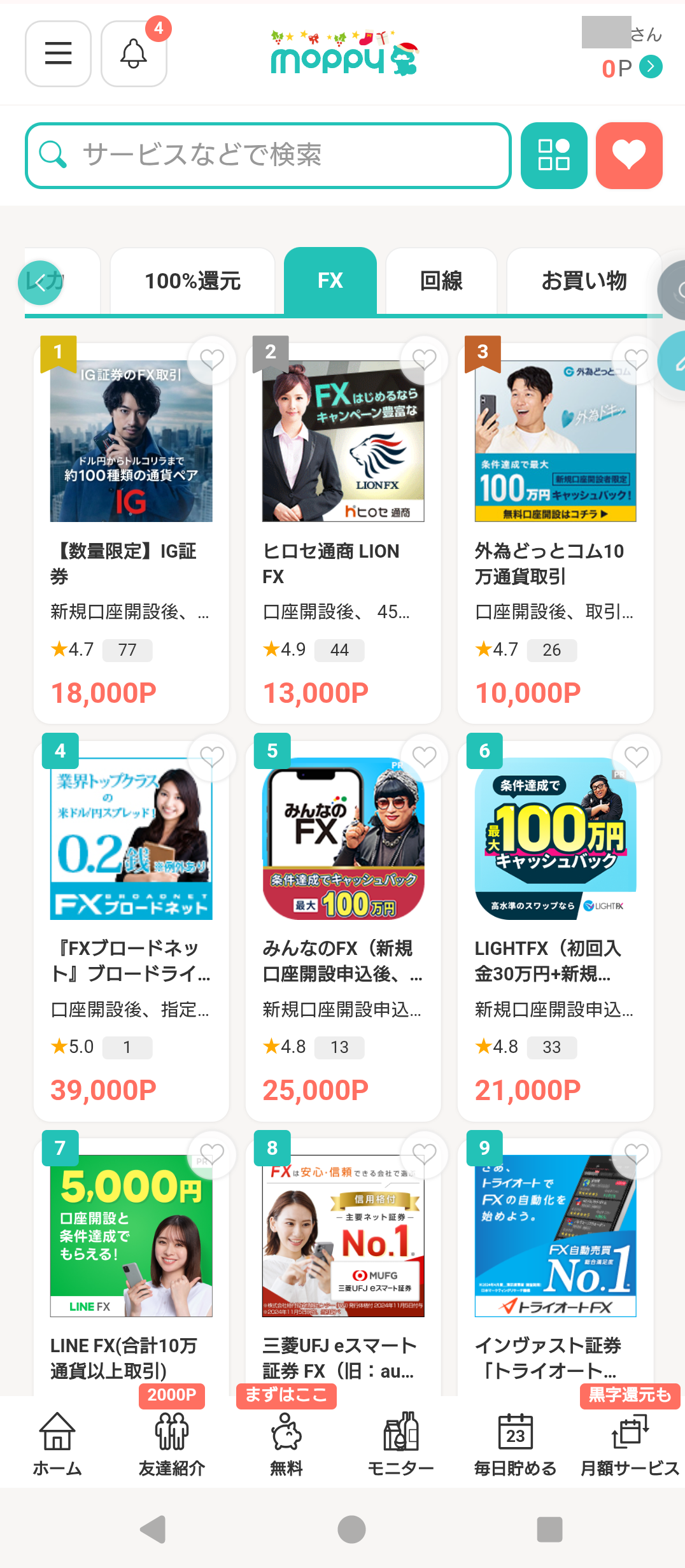 同じ証券会社の案件でも、経由するサイトによって報酬が数千円違うことがあります。モッピーは会員数が1,000万人を超える最大手だけあって、企業から引き出す報酬額が非常に高い傾向にあります。