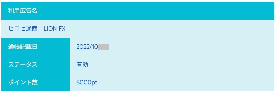 ヒロセ通商 LION FX: 6,000pt(6,000円)